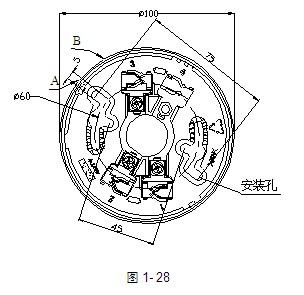 安裝接線盒可采用86H50型標(biāo)準(zhǔn)預(yù)埋盒,安裝采用DZX-02定位底座,其示意圖如圖1-28: