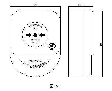 J-SAP-8401海灣消防手動(dòng)火災(zāi)報(bào)警按鈕為紅色全塑結(jié)構(gòu),分底盒與上蓋兩部分。底盒與上蓋采用拔插式結(jié)構(gòu)裝配,安裝拆卸簡(jiǎn)單、方便,連接緊密,非常便于工程調(diào)試及維修更換。手動(dòng)火災(zāi)報(bào)警按鈕外形示意圖如圖2-1: