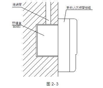 手動(dòng)火災(zāi)報(bào)警按鈕底盒背面和底部各有一個(gè)敲落孔,可明裝也可暗裝,明裝時(shí)可將底盒裝在86H50預(yù)埋盒上,明裝示意圖見(jiàn)圖2-3;暗裝時(shí)可將底盒裝進(jìn)埋入墻內(nèi)的YM-02C型專(zhuān)用預(yù)埋盒里(安裝方式見(jiàn)第二章1.5節(jié)YM-02C使用方法)。