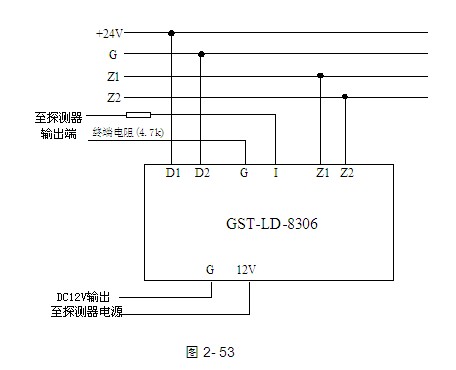 布線要求:信號線Z1、Z2采用阻燃RVS雙絞線,截面積≥1.0mm2;電源線D1、D2采用阻燃BV線,截面積≥1.5mm2;G、I、12V采用截面積≥1.0mm2的RV線。
