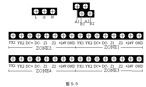 YK1、YK2:各區(qū)氣體釋放反饋信號(hào)輸入端,應(yīng)輸入動(dòng)合型干觸點(diǎn)信號(hào)。其終端匹配電阻為4.7kΩ/0.25W。