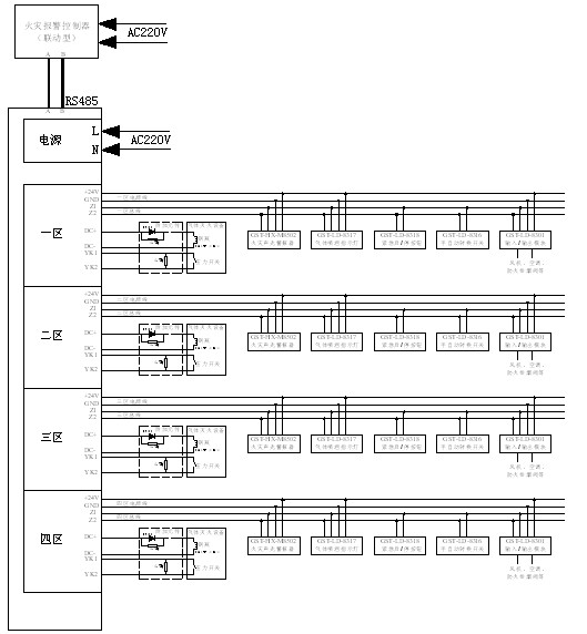 GST-QKP04可帶4個(gè)區(qū)的氣體滅火設(shè)備,實(shí)現(xiàn)對(duì)4個(gè)防護(hù)區(qū)的保護(hù);GST-QKP04/2可帶2個(gè)區(qū)的氣體滅火設(shè)備,實(shí)現(xiàn)對(duì)2個(gè)防護(hù)區(qū)的保護(hù)。其中每個(gè)區(qū)所帶設(shè)備及數(shù)量如下: