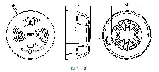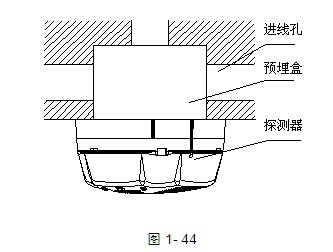 首先將探測器底座固定在86H50預(yù)埋盒上,然后根據(jù)接線端子說明,將引線固定到底座上,再將探測器安裝到底座上,其安裝示意圖如圖1-44所示。