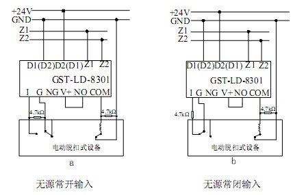 Z1、Z2:接火災(zāi)報警控制器信號二總線,無極性