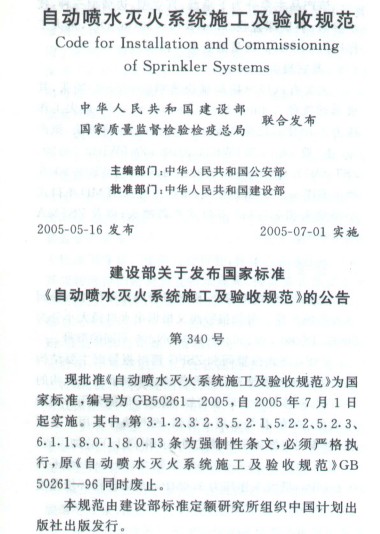 自動(dòng)噴水滅火系統(tǒng)施工及驗(yàn)收規(guī)范GB 50261-2005